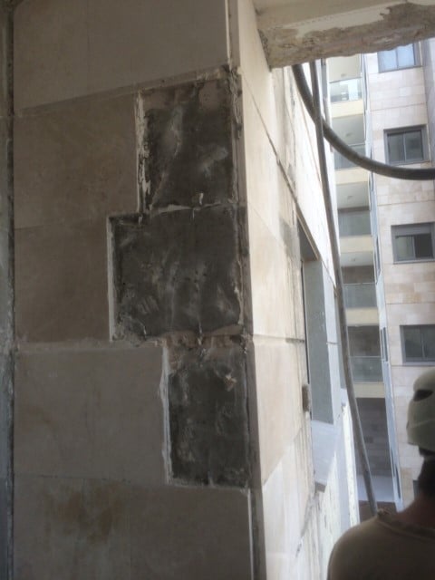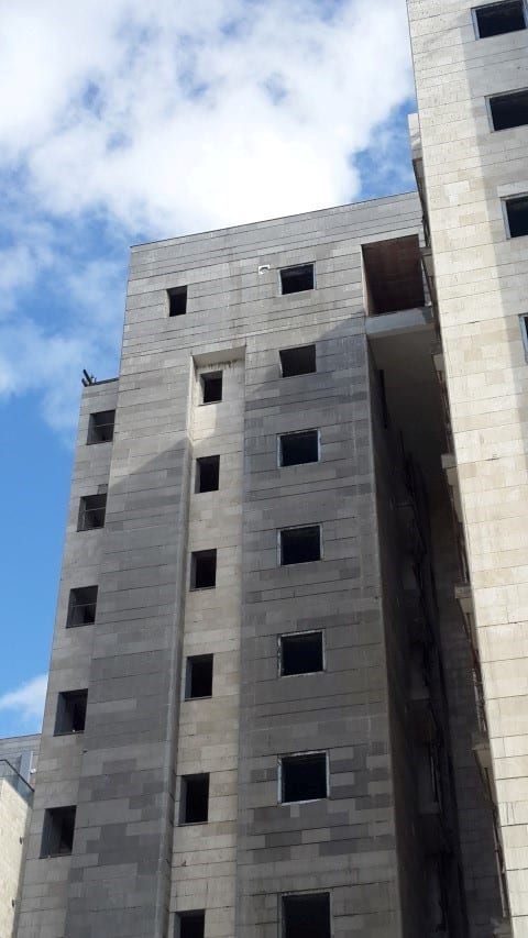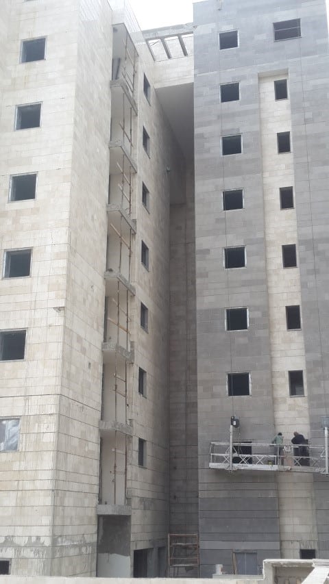 שם הפרוייקט: "תל אביבי" - מח"ל 26, תל אביב. מבוצע עבור: קלוד נחמיאס חברה לבניין. שלושה בנינים של 8 קומות כ"א, בחיפוי אבן מבריקה. ניקיון שיש באמצעות ליטוש ושיוף עדין. איטום ממשקים באמצעות סיקה בין קומה לקומה ובפינות המבנה. תיקוני אבנים והחלפות אריחי שיש.